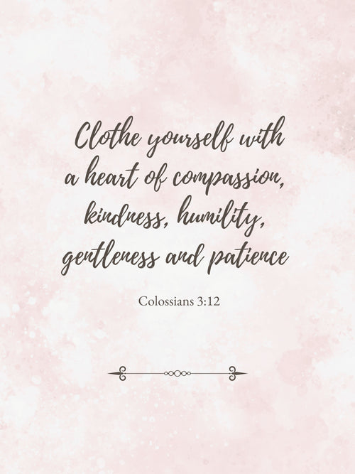 Colossians 3:12 Scripture Print | Clothe Yourself With Compassion | Blush Watercolor Wall Art Digital Download -