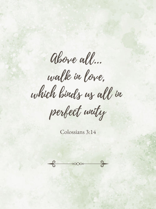 Colossians 3:14 Scripture Print | Walk in Love | Sage Green Watercolor Wall Art Digital Download -